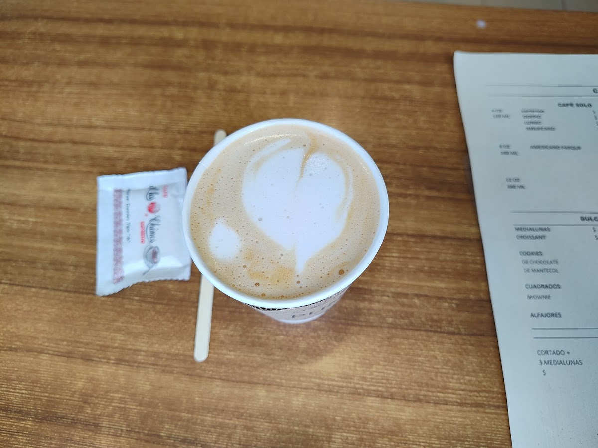 Cafe Flat White Mediano/8 oZ/240ml + 2 medialunas.
